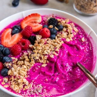 This Dragon Fruit Smoothie Bowl is a delicious frozen treat that comes together in 5 minutes with just a few ingredients.