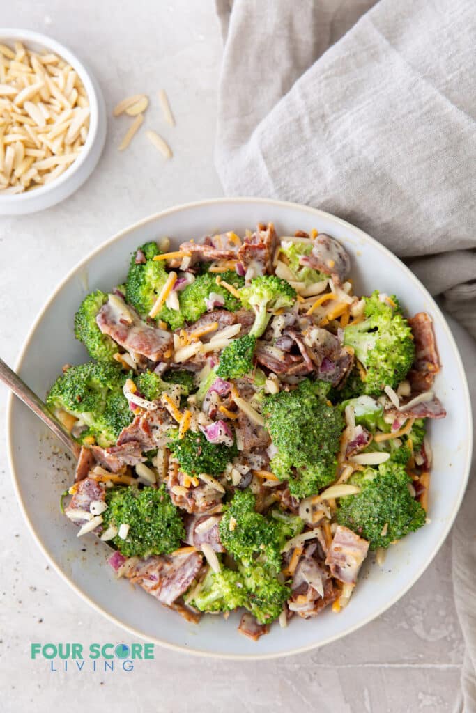 Bring together healthy broccoli florets, a creamy sweet and tangy dressing, and some crunchy, flavorful add-ins, and you have the perfect recipe for a satisfying, keto, low carb salad.