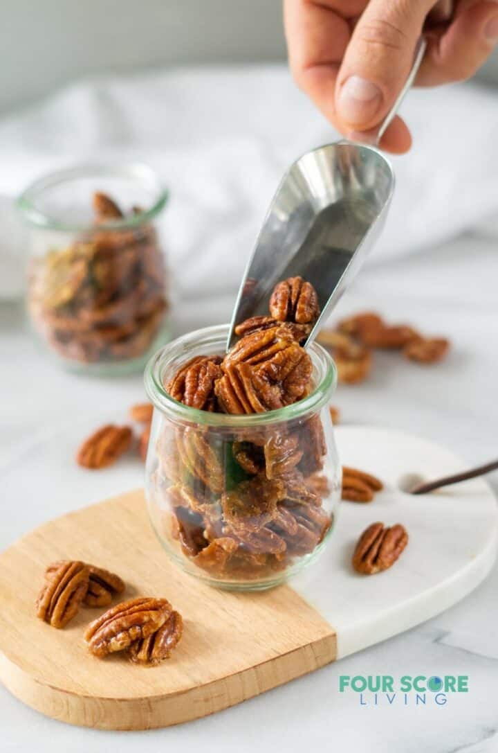 Keto candied pecans are an excellent holiday gift, or a thoughtful gift for any other occasion.