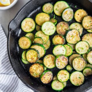 Season this sauteed zucchini recipe with your favorite fresh herbs like basil, oregano, tarragon and thyme.