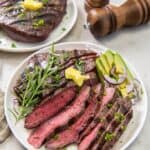 Remove the steaks to a cutting board, tent with foil, and allow them to rest for 5-10 minutes. Slice the steak thinly across the grain and serve as desired.